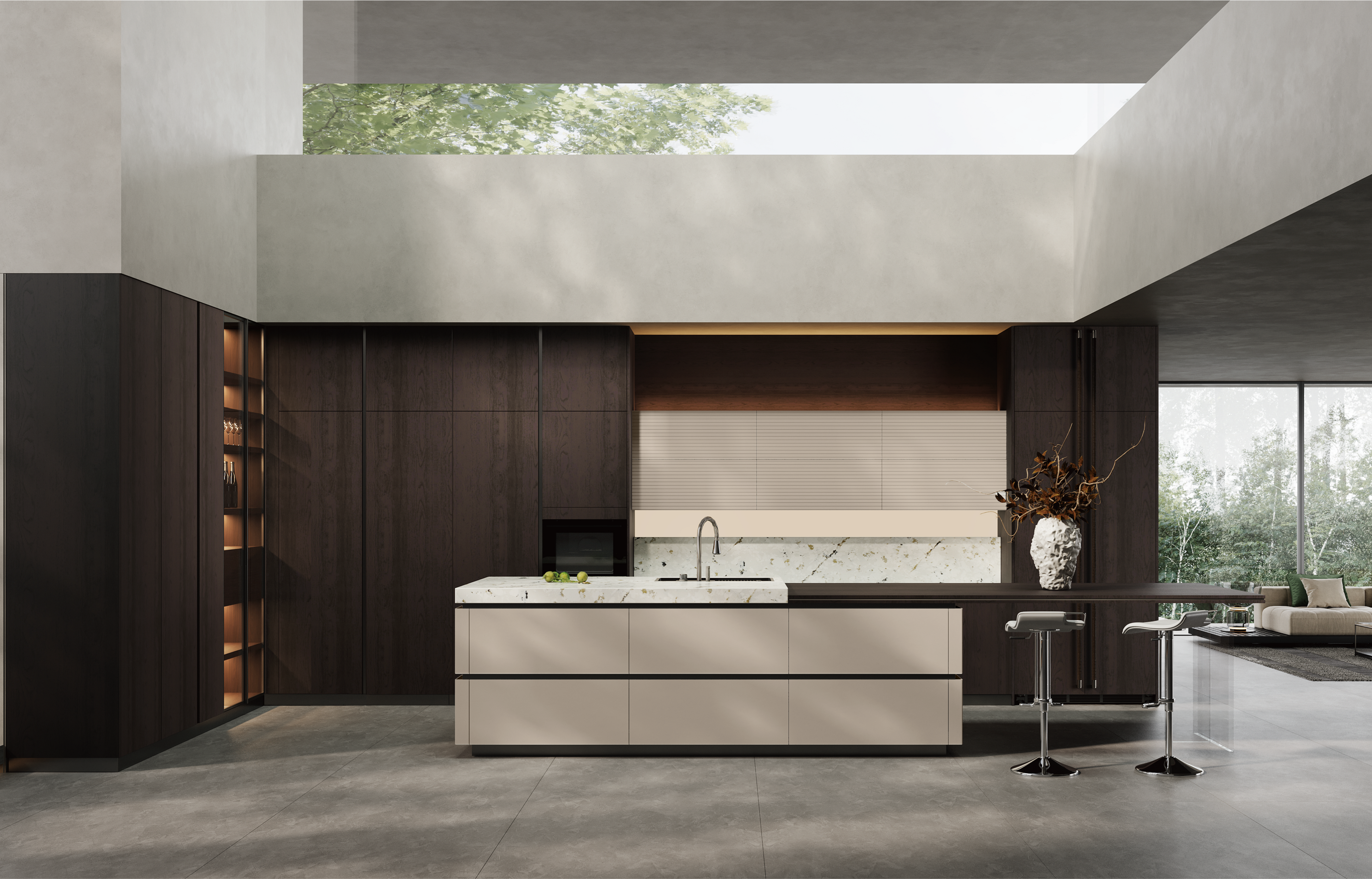 通过Z6·尊龙凯时厨柜量体裁柜,定制出适合主厨下厨的烹饪区和洗涤区的舒适高度。